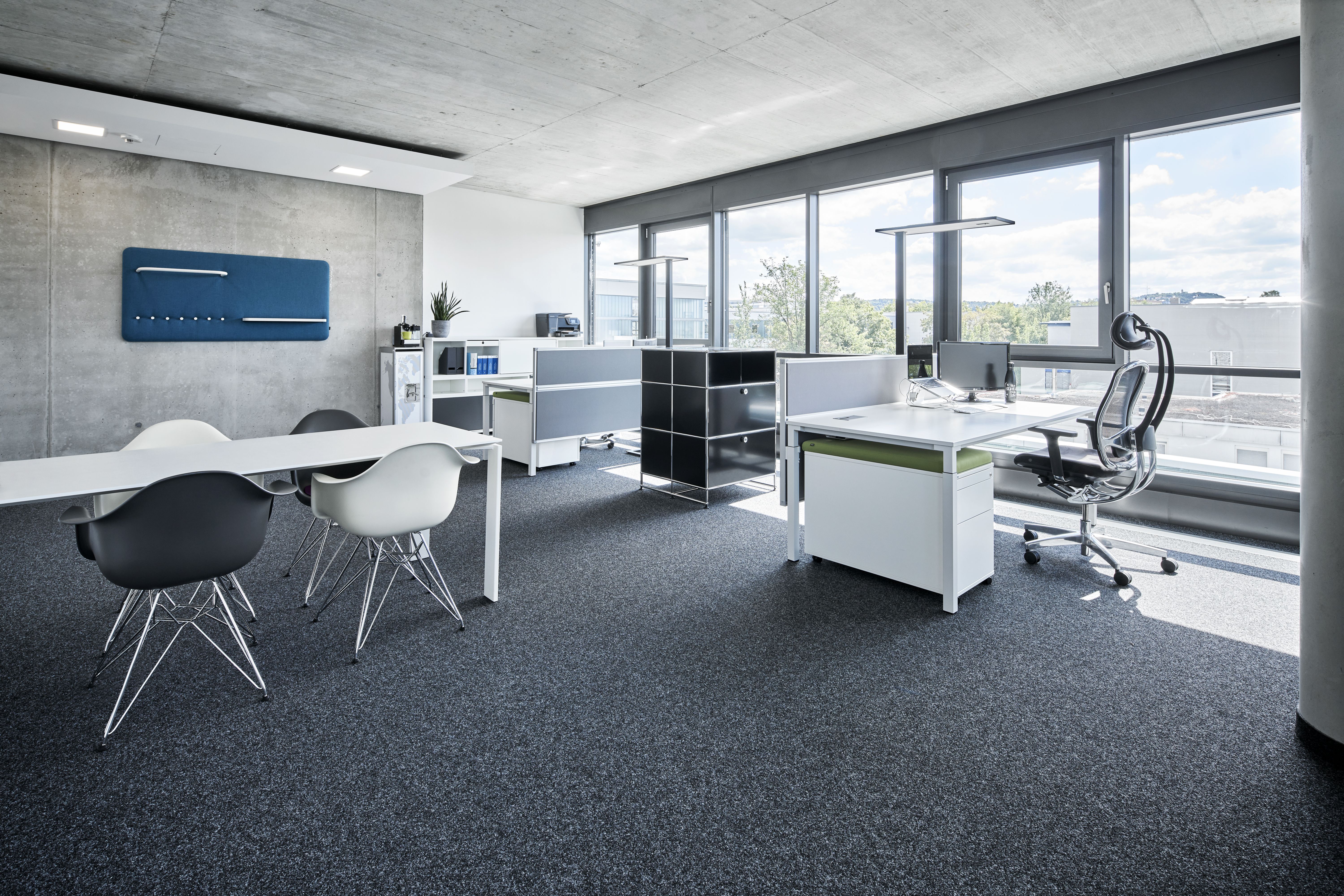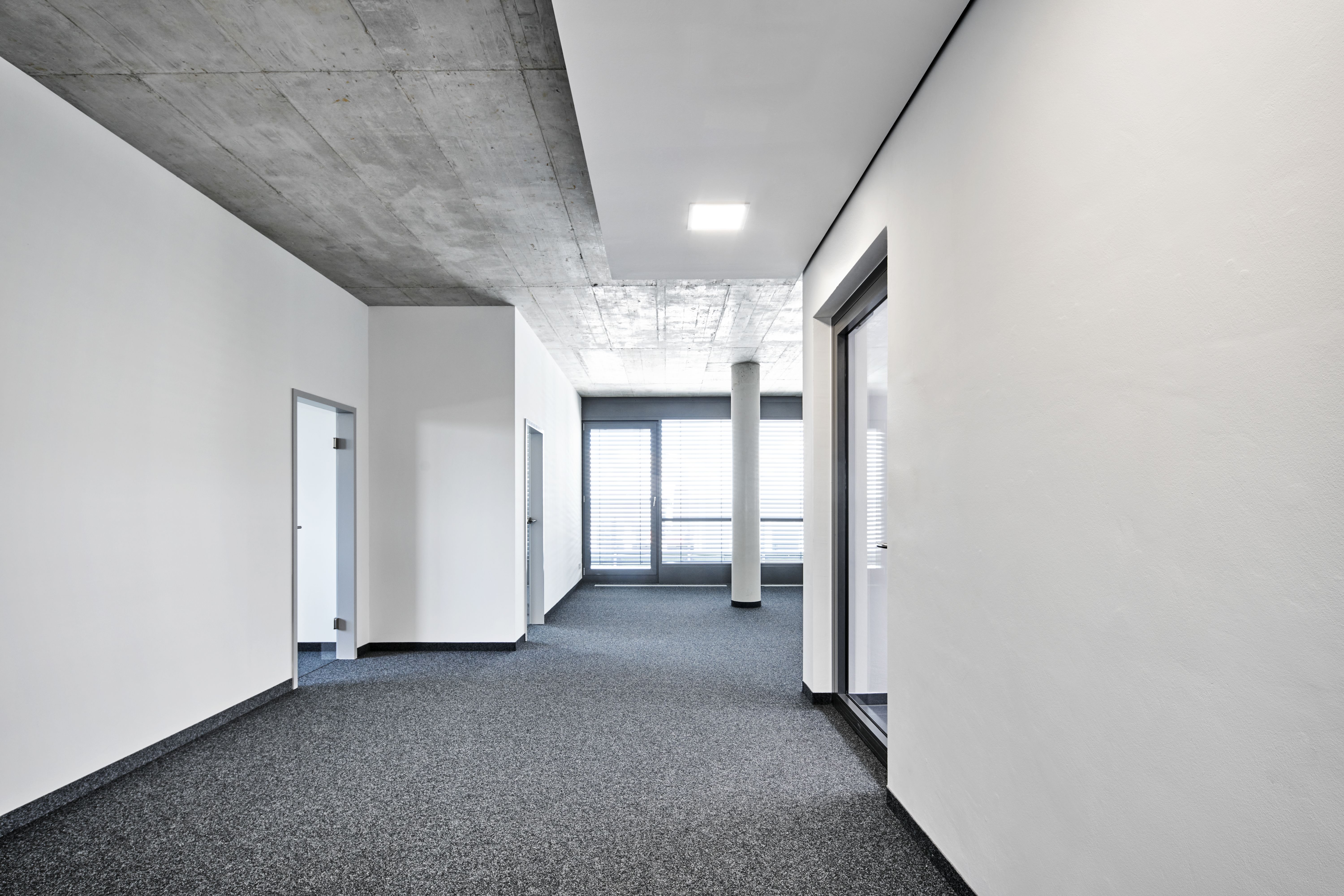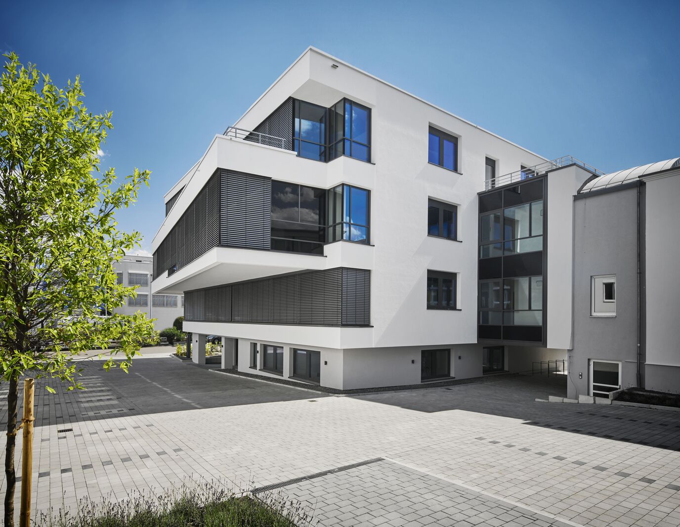 Das bestehende Gebäude wurde in C-Form angelegt, ergänzt durch einen zentralen Neubau, der eine Tiefgarage für das gesamte Objekt beherbergt. Die neuen, hellen Büroflächen bieten eine moderne Arbeitsumgebung mit durchdachtem Design und optimaler Nutzung des natürlichen Lichts.