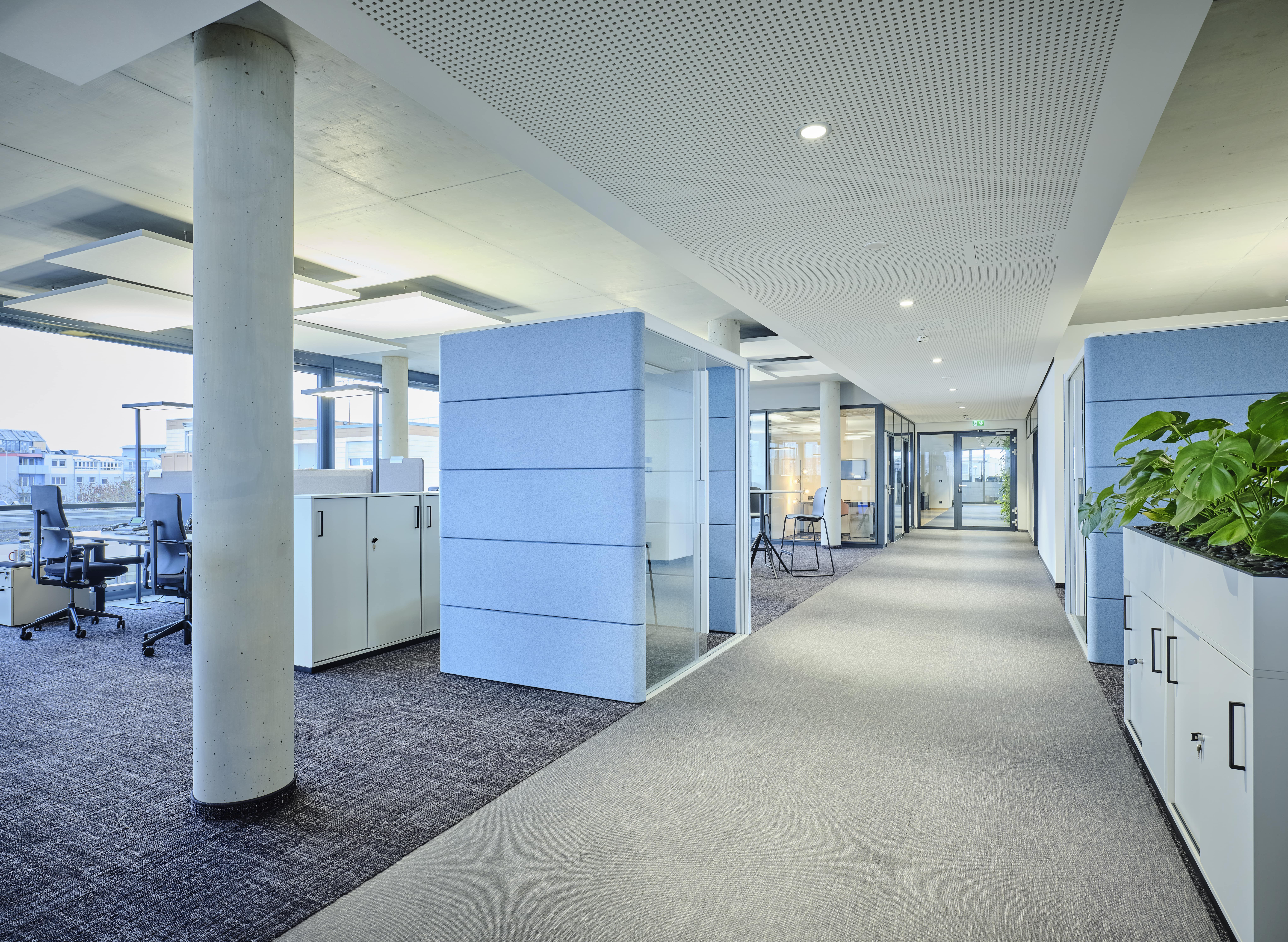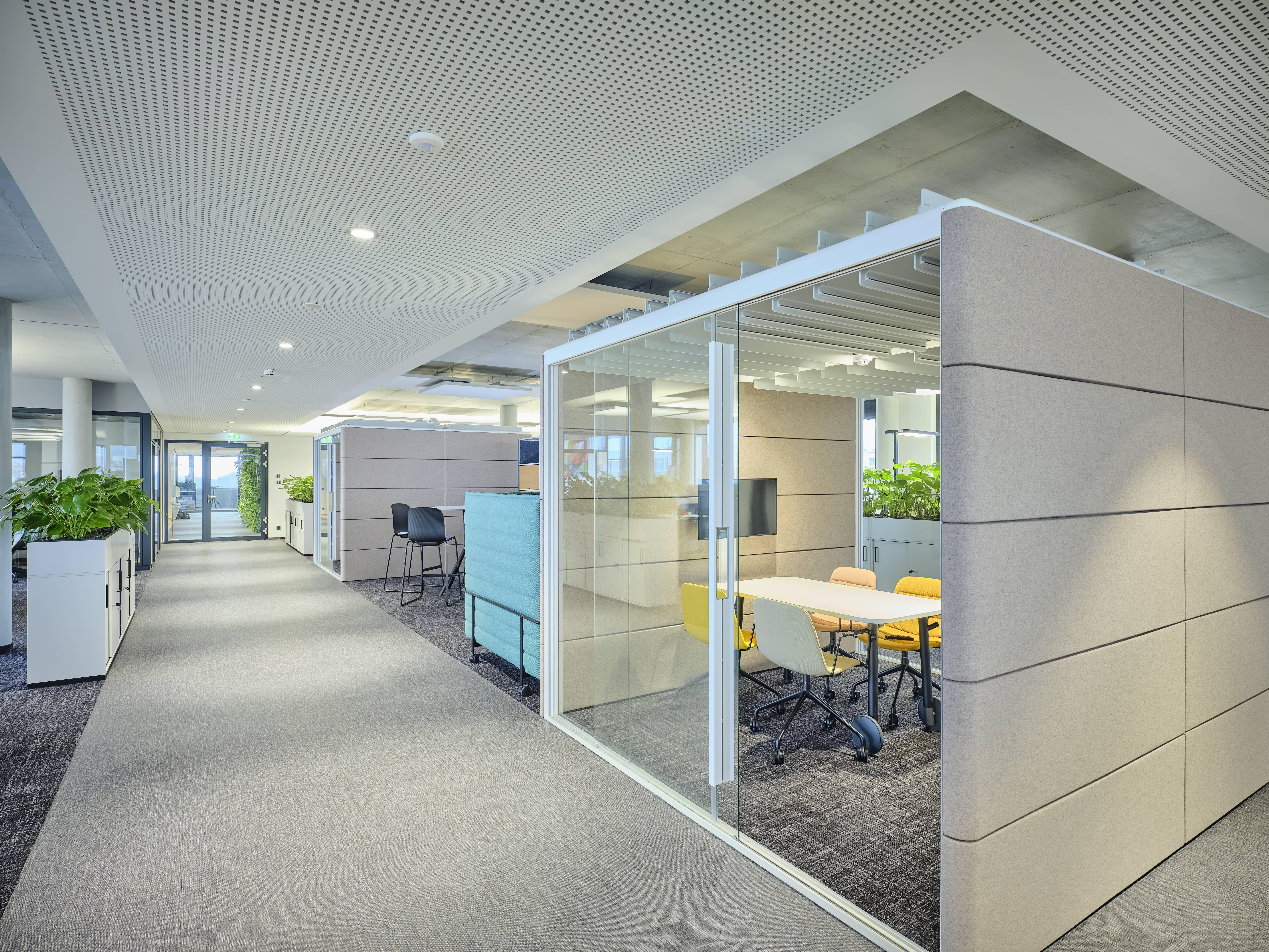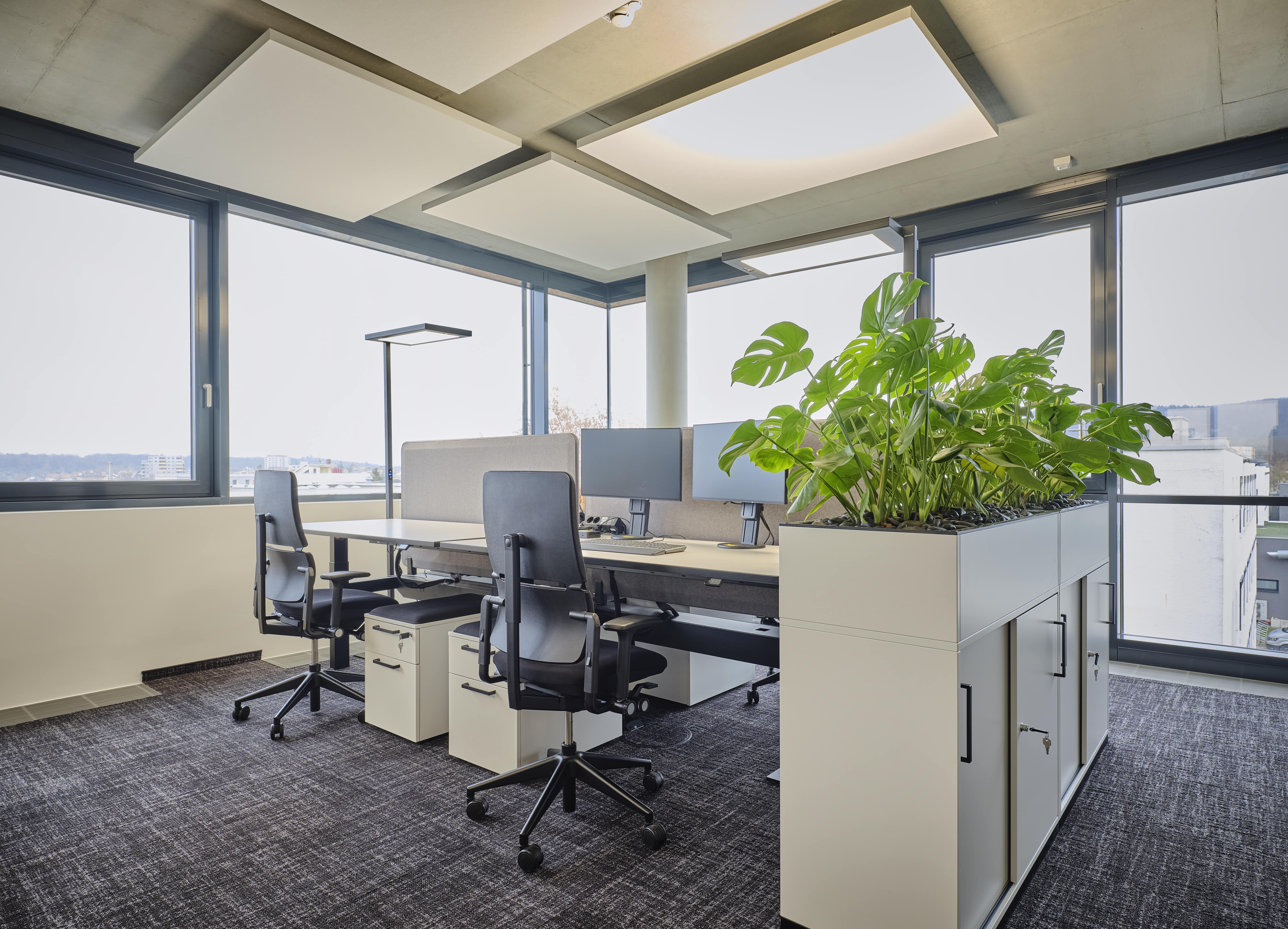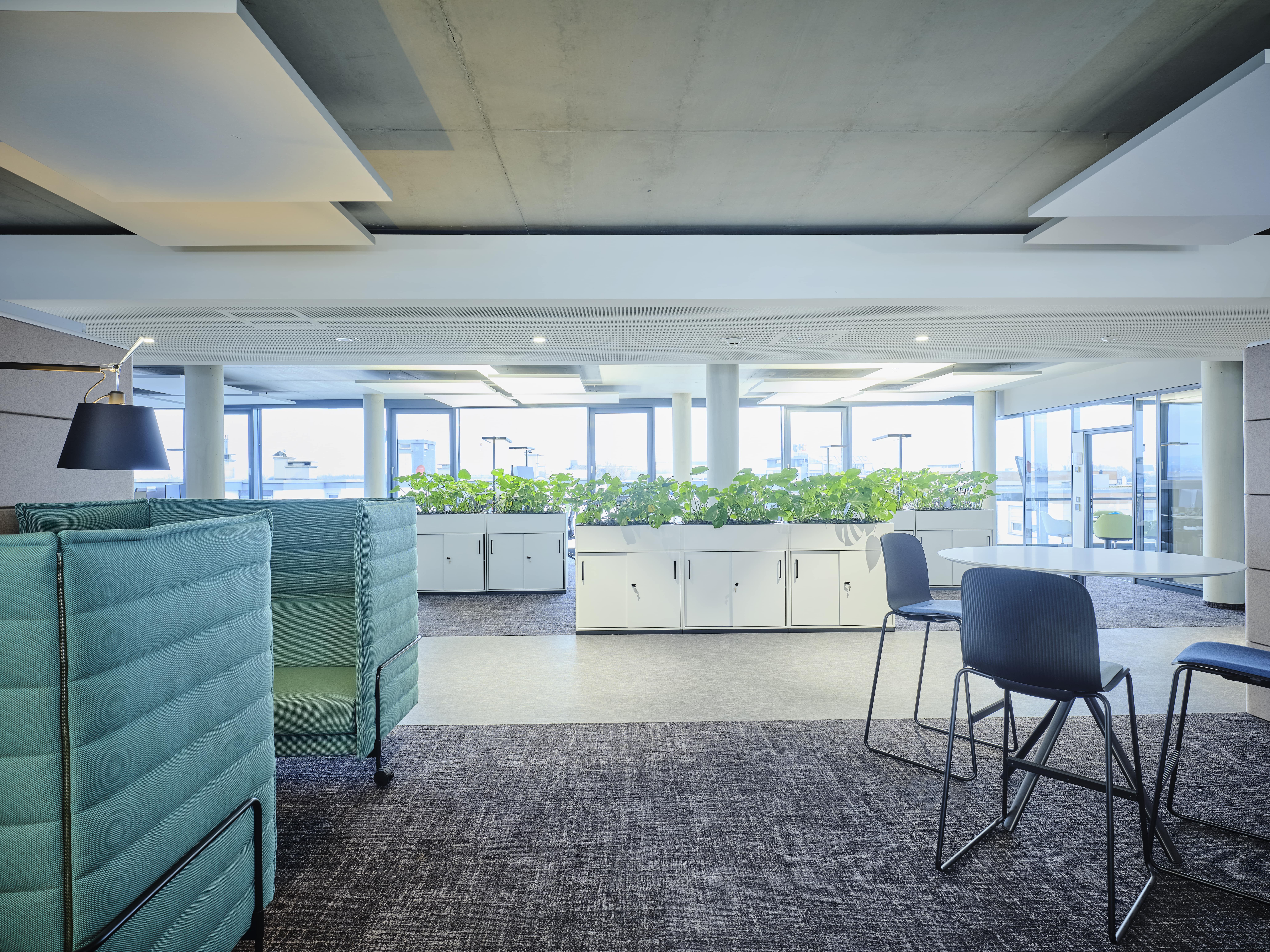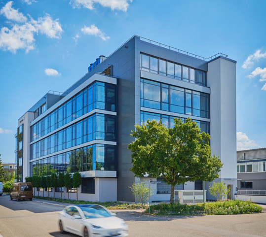 Das moderne Bürogebäude zeichnet sich durch gelungenen Materialwechsel aus Glas, Beton und Vegetationsflächen im Innen- und Aussenbereich aus, die eine harmonische Atmosphäre schaffen. Großzügig und lichtdurchflutete Büroflächen wechseln sich mit vielfältigen kommunikativen Bereichen ab, im Erdgeschoss befindet sich eine Snackbar für die Gäste und Mitarbeiter des Hauses.