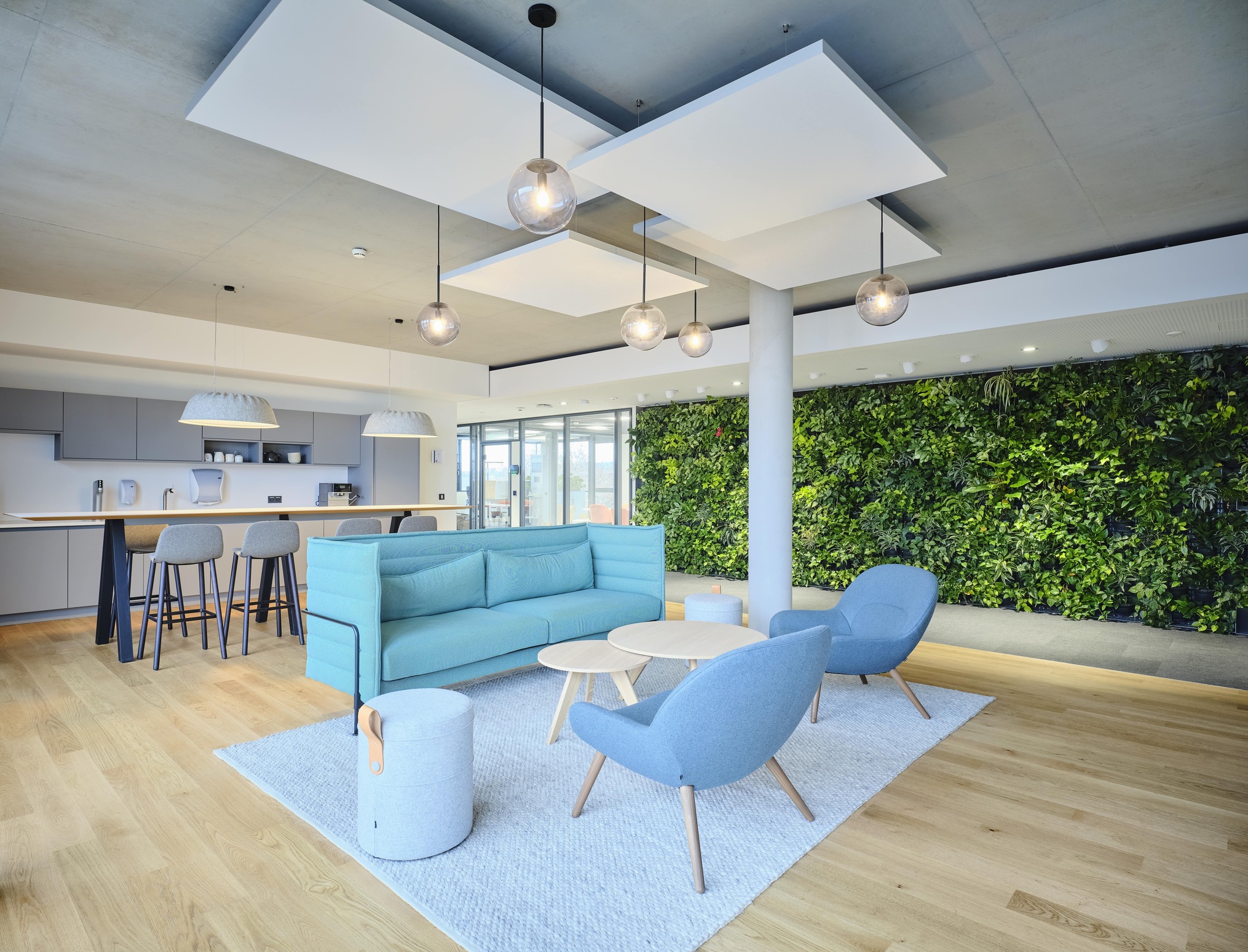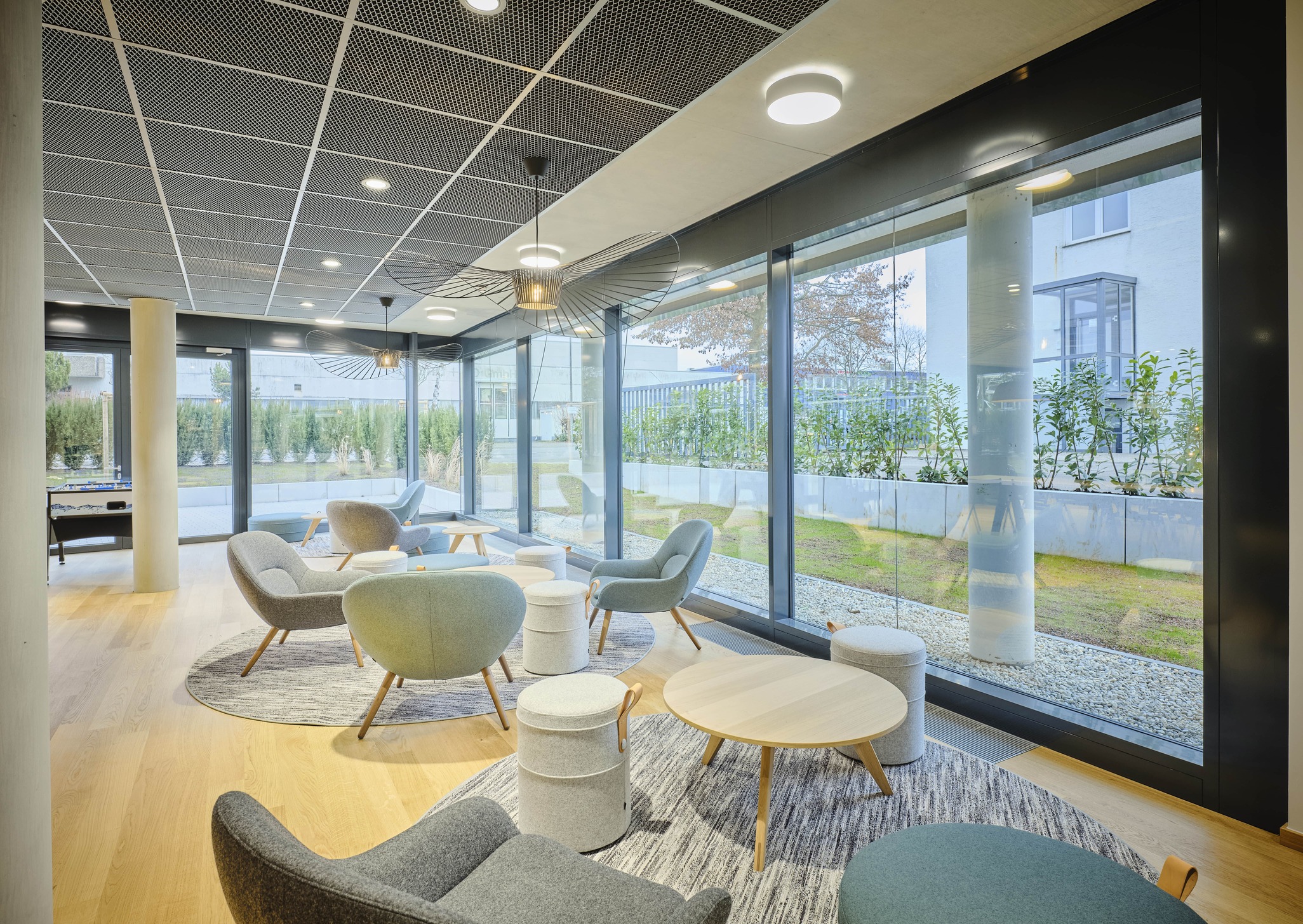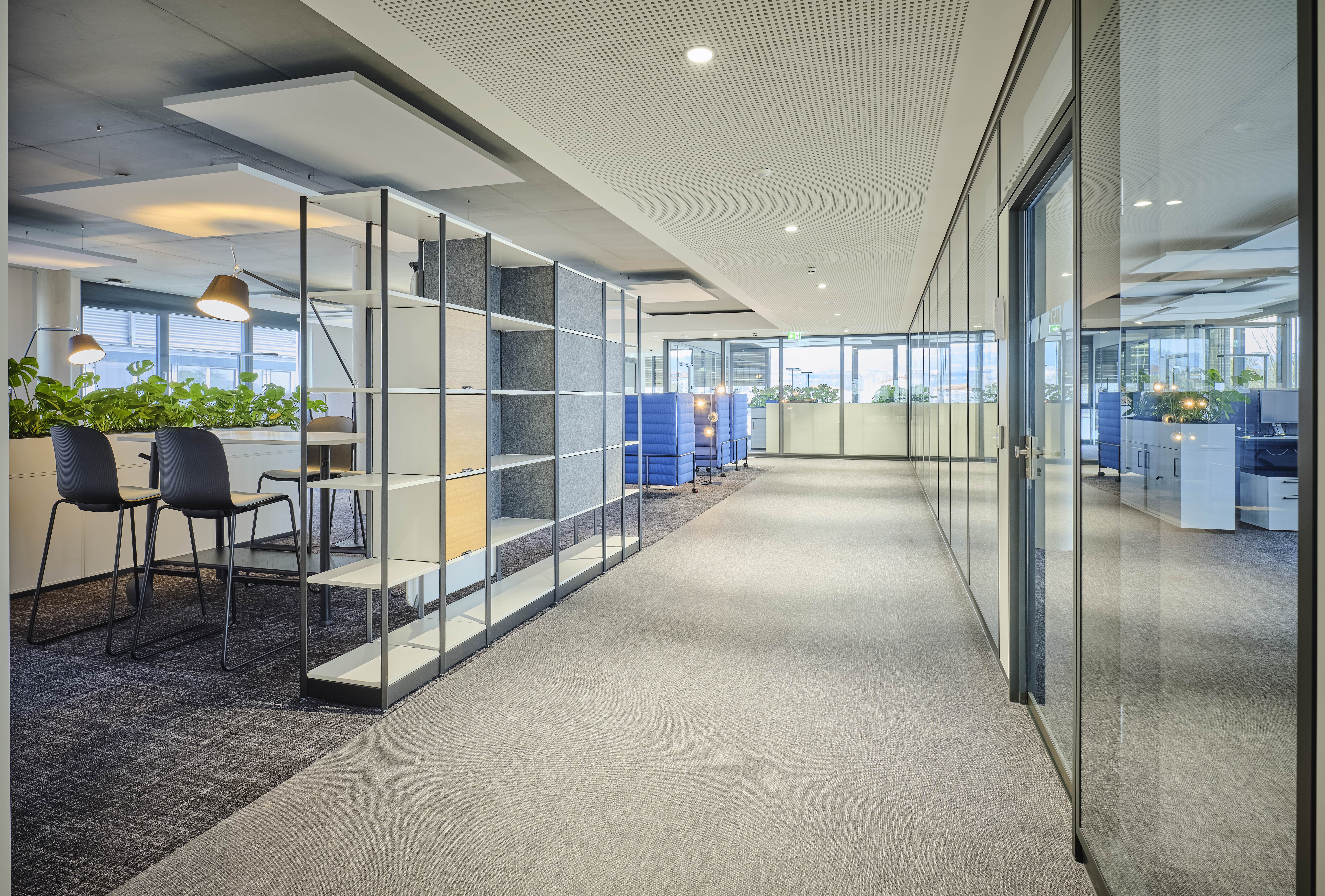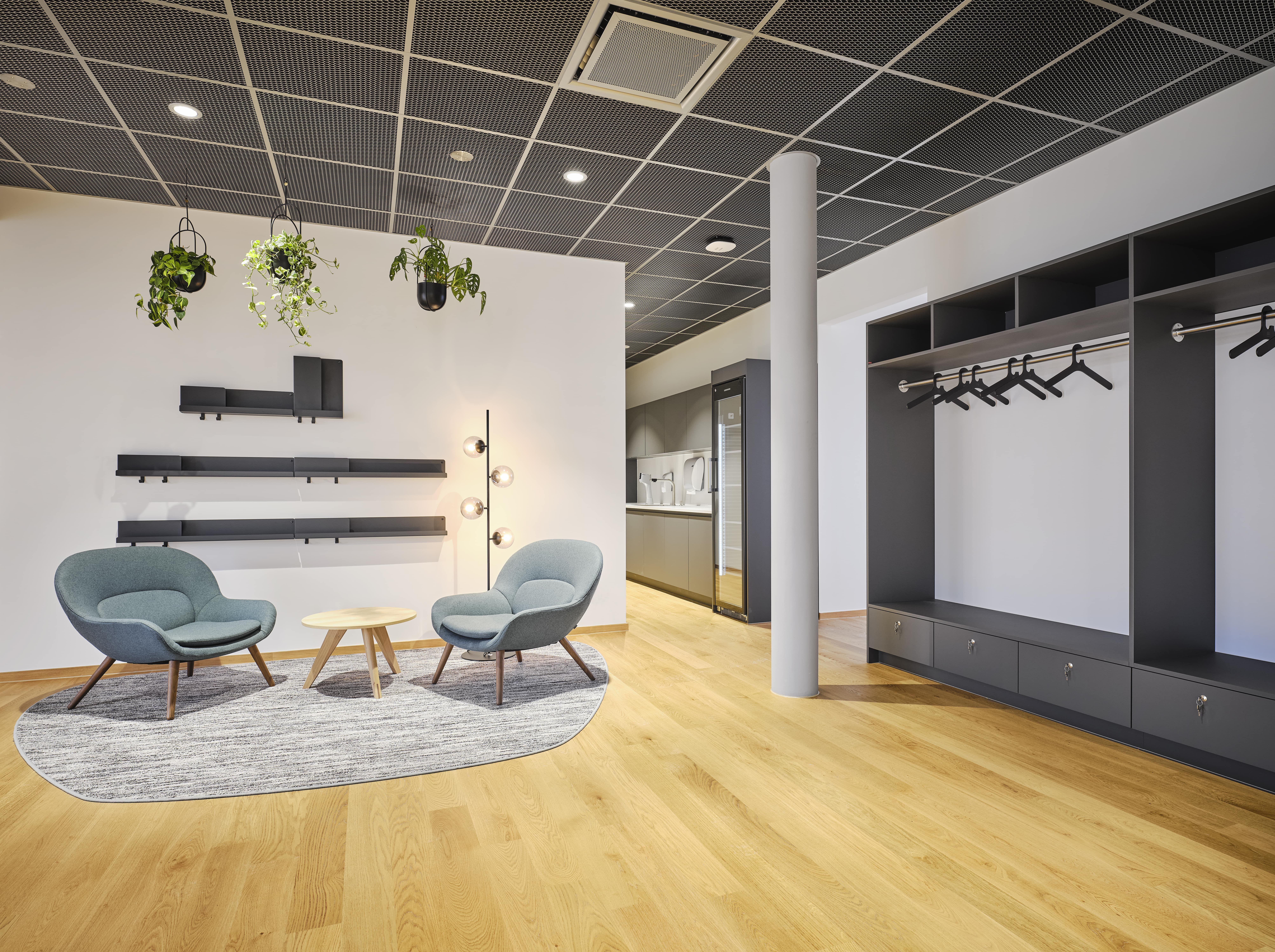 Das moderne Bürogebäude zeichnet sich durch gelungenen Materialwechsel aus Glas, Beton und Vegetationsflächen im Innen- und Aussenbereich aus, die eine harmonische Atmosphäre schaffen. Großzügig und lichtdurchflutete Büroflächen wechseln sich mit vielfältigen kommunikativen Bereichen ab, im Erdgeschoss befindet sich eine Snackbar für die Gäste und Mitarbeiter des Hauses.