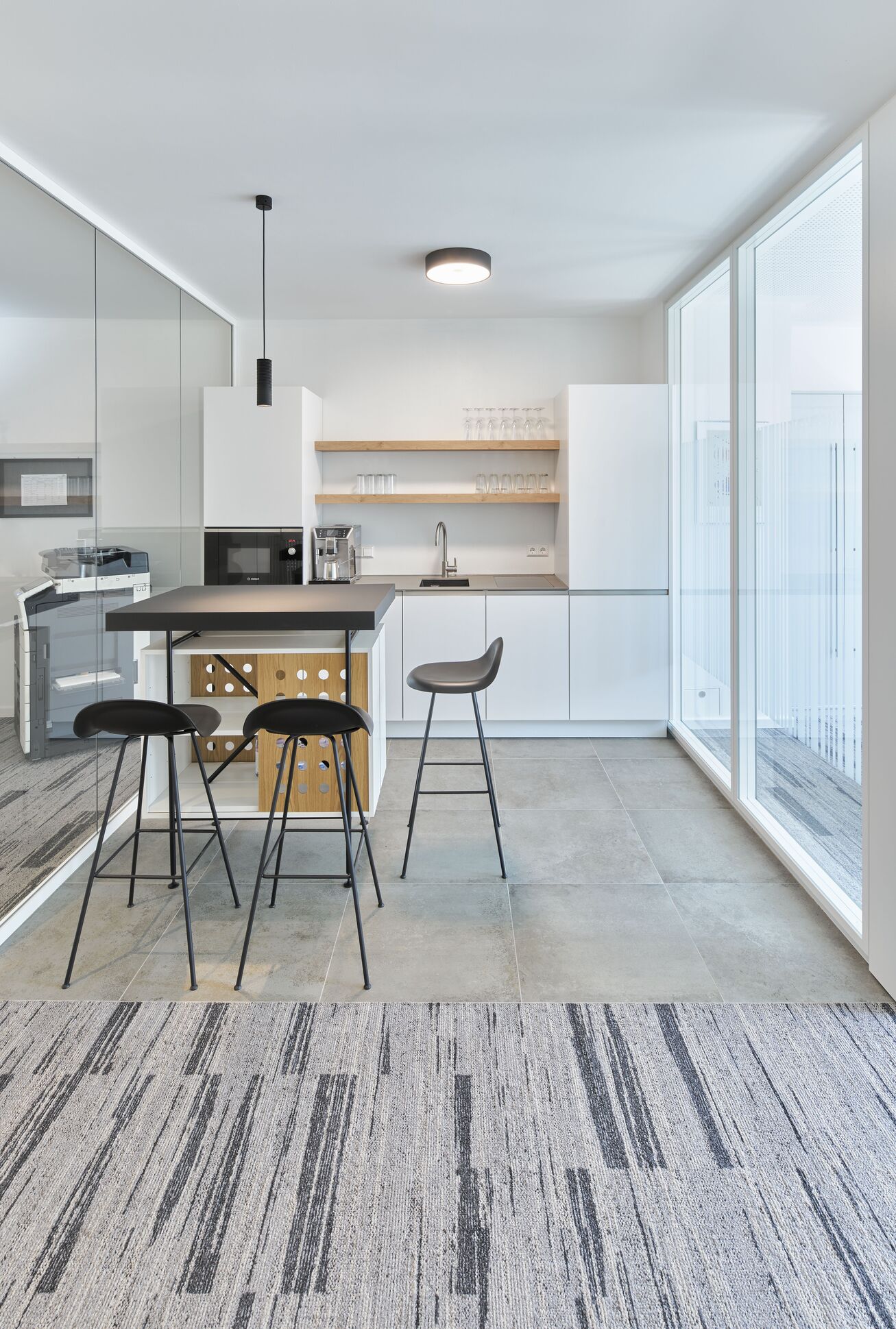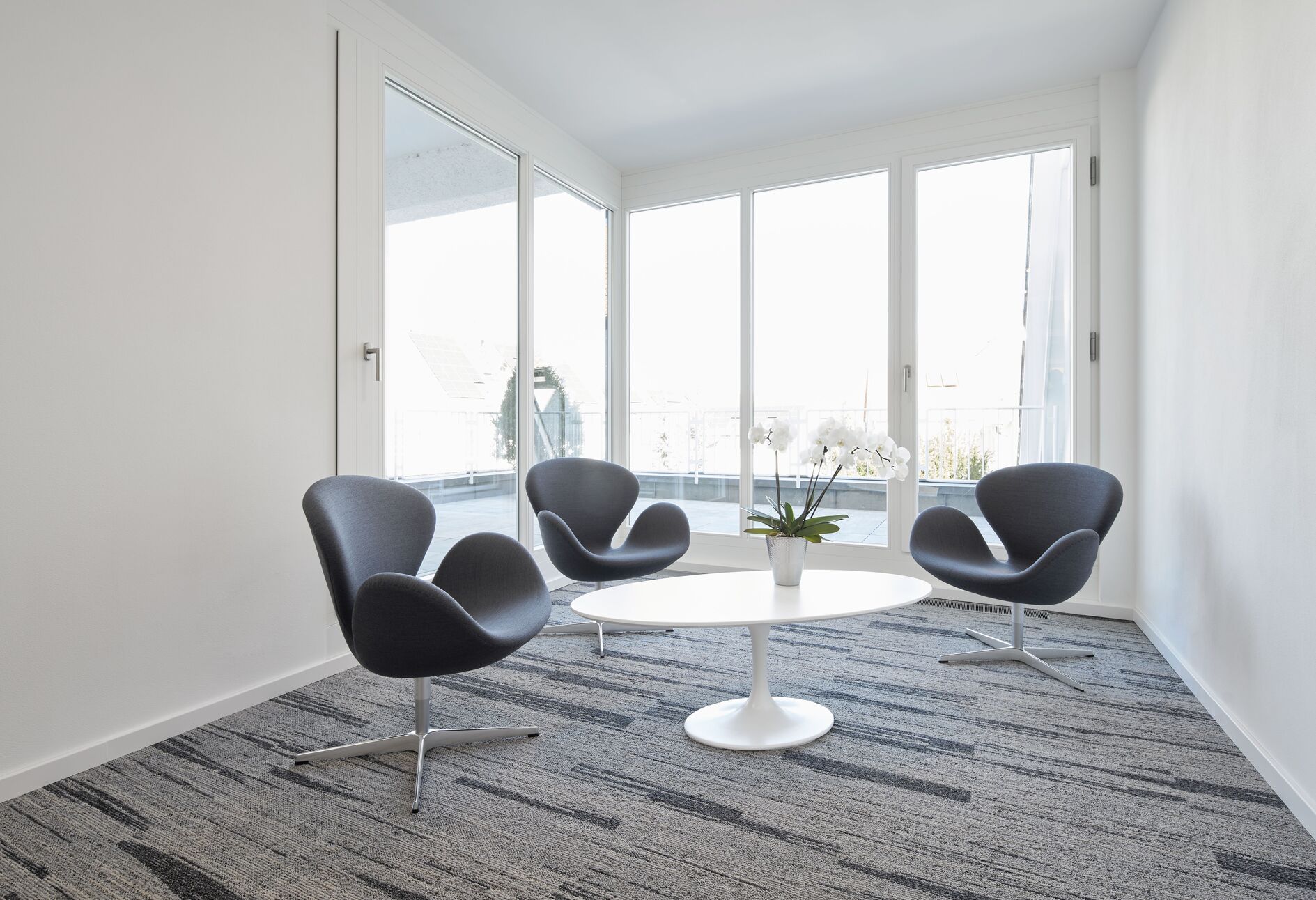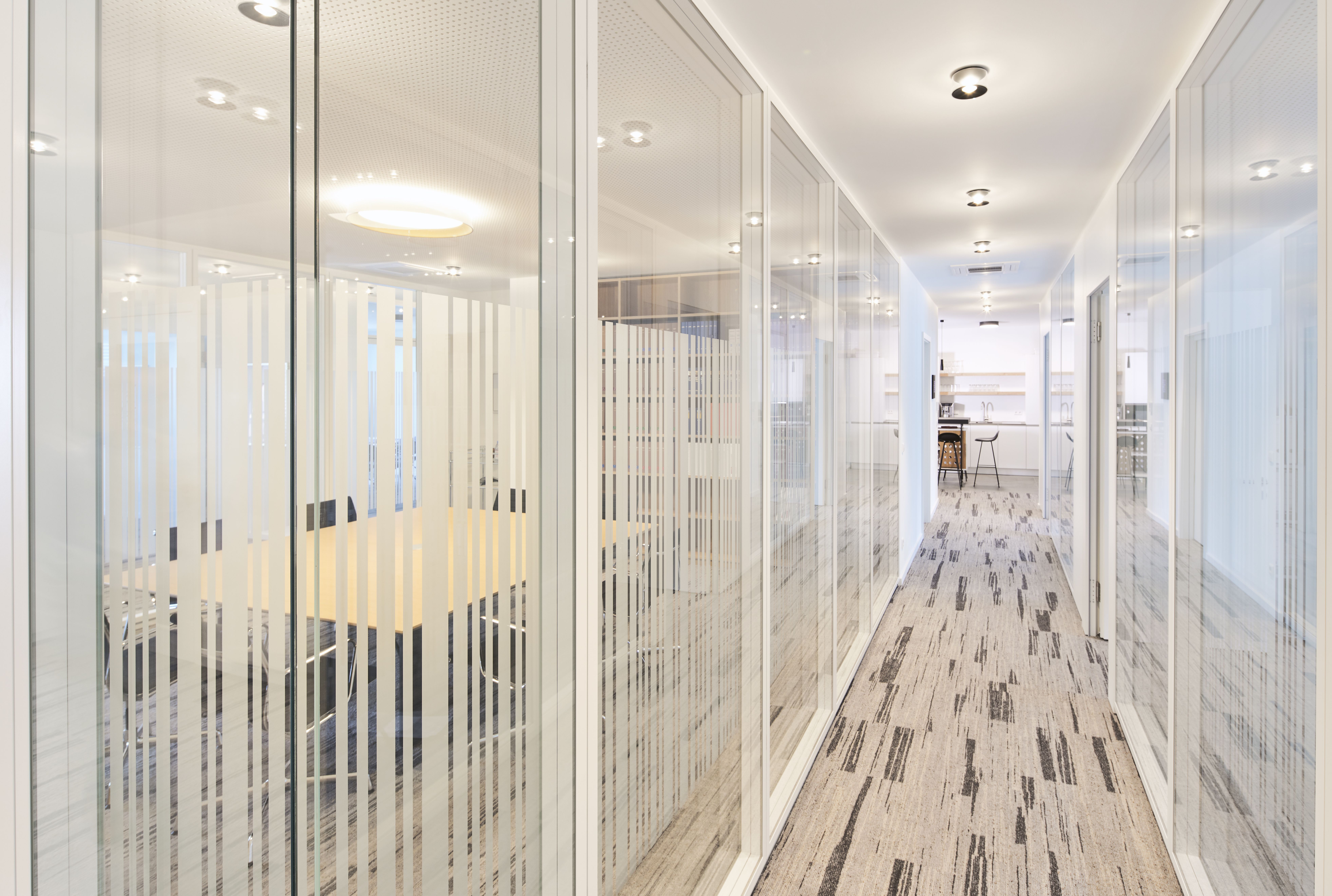 Ein in die Jahre gekommene Notariat wurde erfolgreich in eine moderne Kanzlei umgewandelt, wobei offene und kommunikative Bereiche sowie der innenliegende Besprechungsraum mit seinen transluzenten Systemtrennwänden die Einzelbürostruktur auflockern.