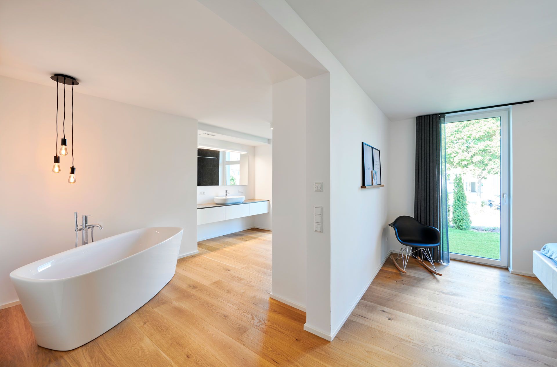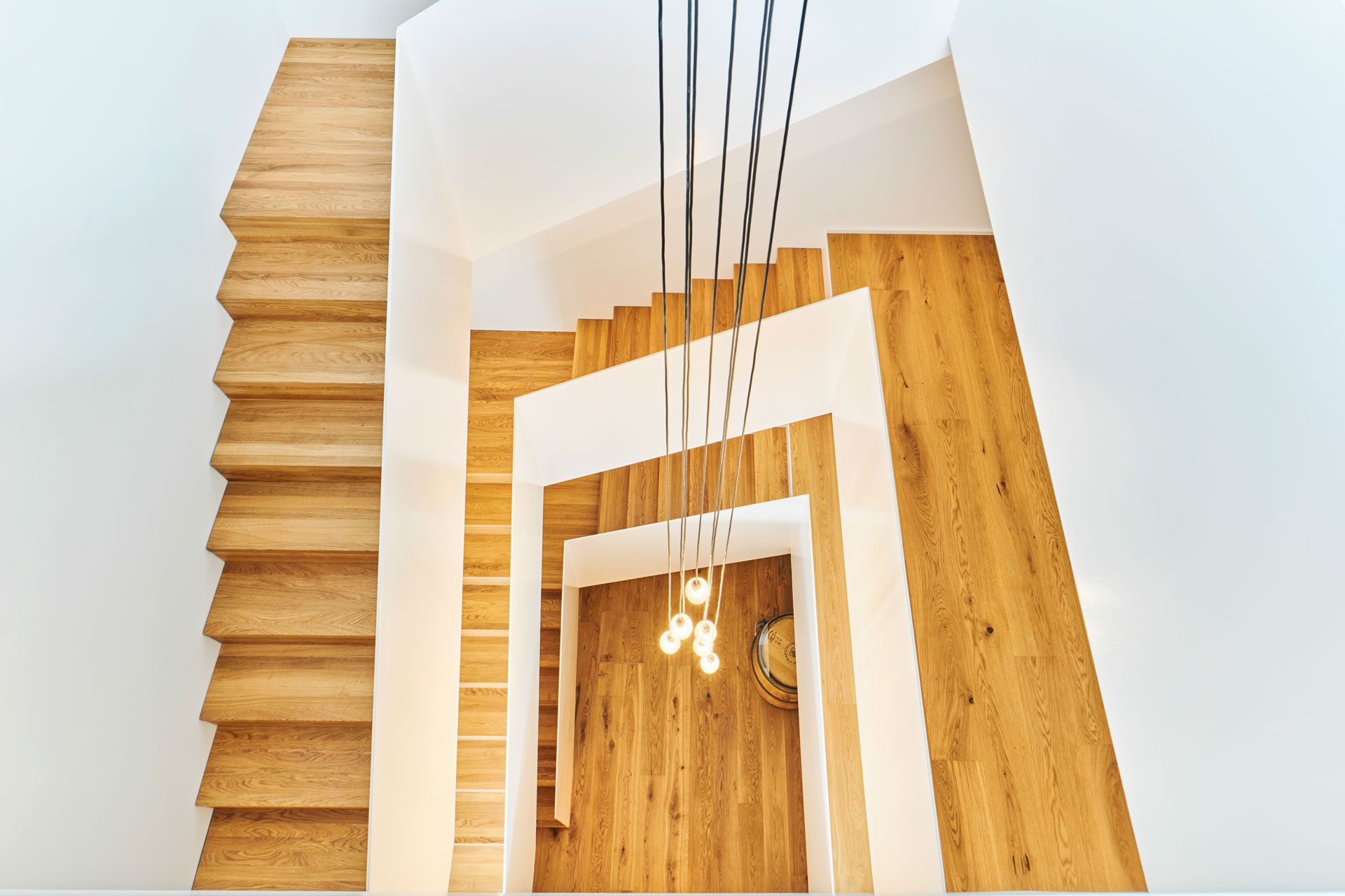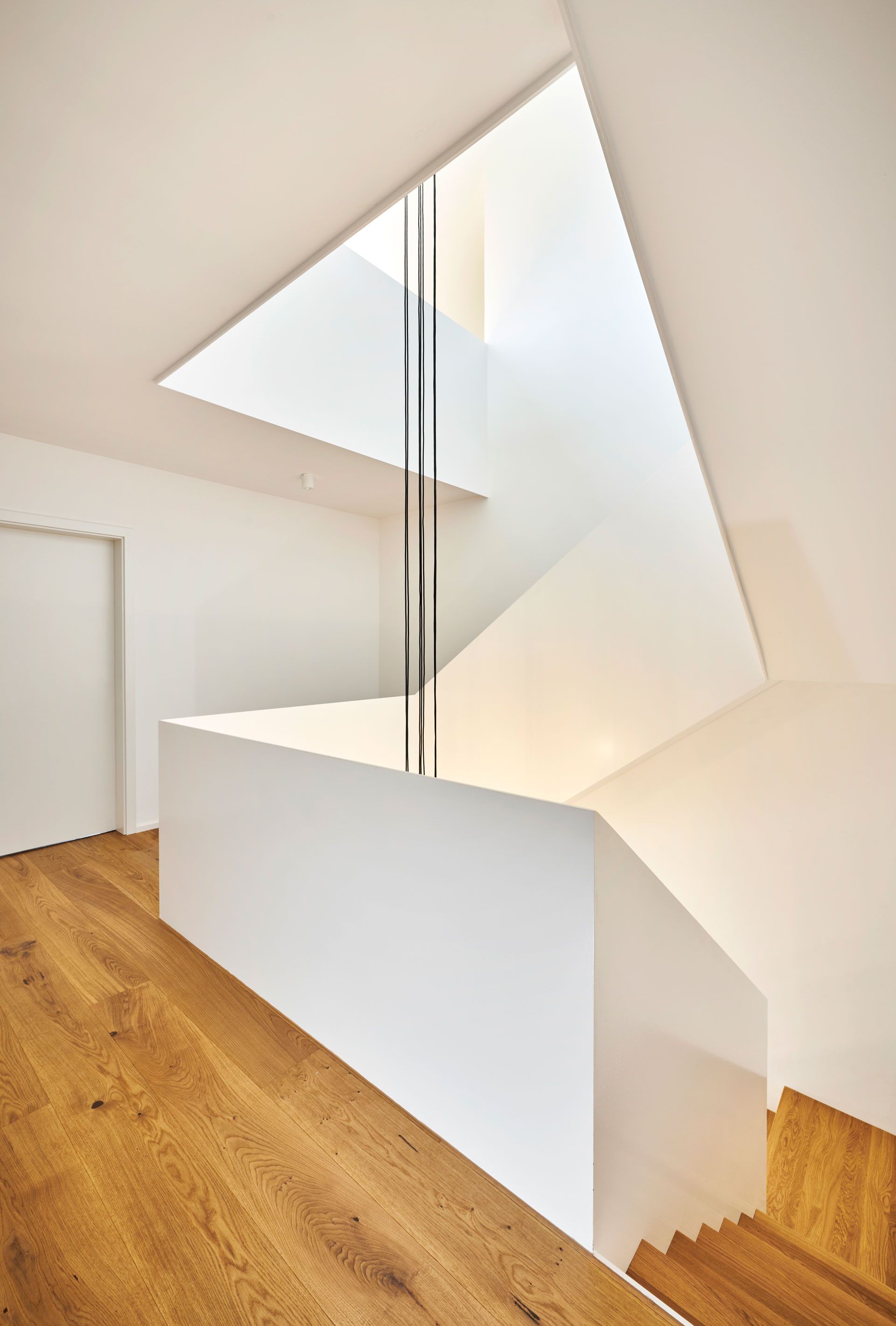 Das bestehende Zweifamilienhaus wurde umgebaut und erweitert, wobei das Herzstück des Designs ein offenes Treppenhaus bildet. Die Treppe windet sich schlangenartig nach oben und wird zum zentralen gestalterischen Element des Hauses. Diese einzigartige Gestaltung schafft nicht nur eine beeindruckende visuelle Wirkung, sondern dient auch als funktionales Bindeglied zwischen den verschiedenen Ebenen.